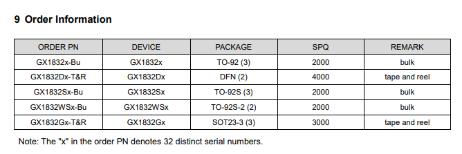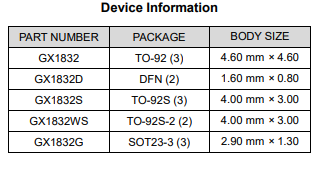The GX1832 is a fully integrated digital temperature sensor that provides a 12-bit temperature result with a resolution of 0.0625°C and an accuracy of up to ±0.5°C with no calibration.The GX1832 is compatible with the one-wire interface and supports up to 32 devices on a single bus. The GX1832 can be easily used as a two wire digital temperature probe or as a direct replace-mentfor NTC thermistors.