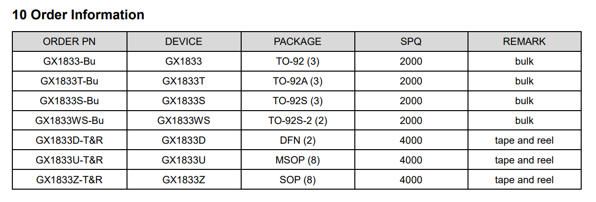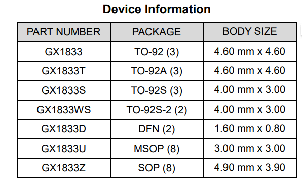 Standby Power Consumption 0.5μA Package form TO92,TO92S,TO92S-2,DFN2,SOT23-3