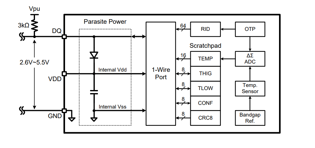 GX1833 is a fully integrated digital temperature sensor that can achieve 12 bit temperature output without any external temperature sensing unit; Compatible with 1-Wire protocol, only a single signal line is needed to simultaneously complete chip power supply and communication output, without the need for strong pull-up working conditions, effectively reducing MCU overhead.
