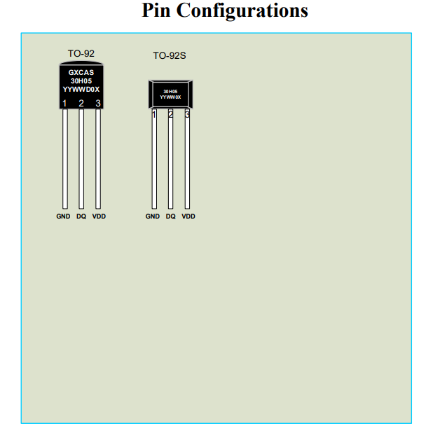 The GX30H05 digital thermometer provides 9-bit to 12-bit Celsius temperature measurements and has an alarm function with nonvolatile user- programmable upper and lower trigger points. The GX30H05 communicates over a 1-Wire bus that by definition requires only one data line (and ground) for communication with a central microprocessor. It has an operating temperature range of -55° C to +125° C and is accurate to ±0.4°C over the range of -10° C to +85° C. In addition, the GX30H05 can derive power directly from the data line (“parasite power”), eliminating the need for an external power supply. Each GX30H05 has a unique 64-bit serial code, which allows multiple GX30H05s to function on the same 1-Wire bus. Thus, it is simple to use one microprocessor to control many GX30H05s distributed over a large area. Applications that can benefit from this feature include HVAC environmental controls, temperature monitoring systems inside buildings, equipment, or machinery, and process monitoring and control systems.