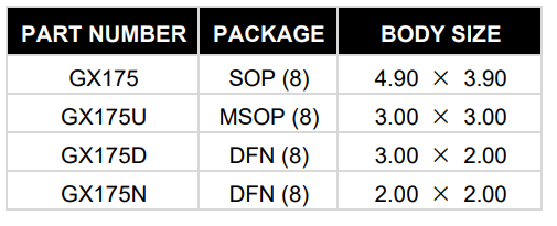 GX175N -T&R GX175N DFN-8 (2*2) 4000 Tape & Reel