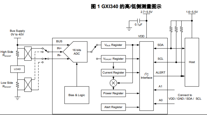 I2C通信电压 1.6V~5.5V 总线电压 测量范围 0~40V