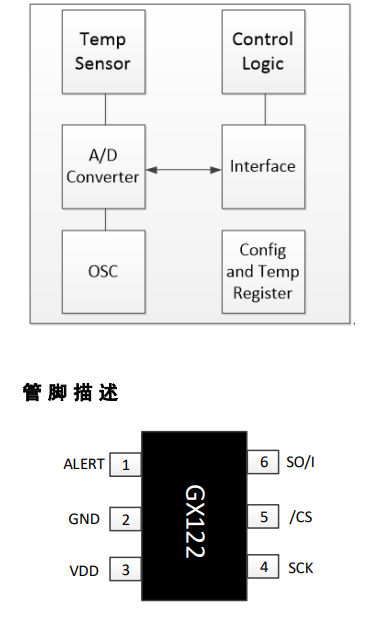 GX122 是 SPI 兼容的温度传感器,有 SOT23-6 封装。GX122 温度传感器只需要一个上拉电阻器就可以在-25℃到+85℃的温度范围做到典型精度在 0.3℃的温度,工作温度高达 150℃。可编程分辨率、可编程设定值和关机功能为任何应用提供了多功能性。低电源电流和电源范围从 2.7V 到 5.5V 使 GX122 成为低功耗应用的优秀候选。GX122 是各种通信、计算机、消费、环境、工业和仪表应用中扩展热测量的理想选择。.