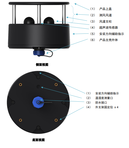 客户自行设计的风速仪支架,请注意支架不要遮挡温湿度测量口。