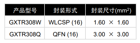GXTR308 本地通道和远程通道的测温精度典型值分别为±0.5℃和±1℃,并均提供 0.0078125℃的测温分辨率和-55℃ ~ +150℃的测温范围。GXTR308 的电源电压范围为 2.7V ~ 5.5V,并提供 1.6mm×1.6mm 的16 Ball WLCSP 和 3mm×3mm 的 16 Pin QFN 封装,以便集成到各种系统中。
