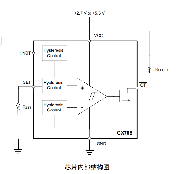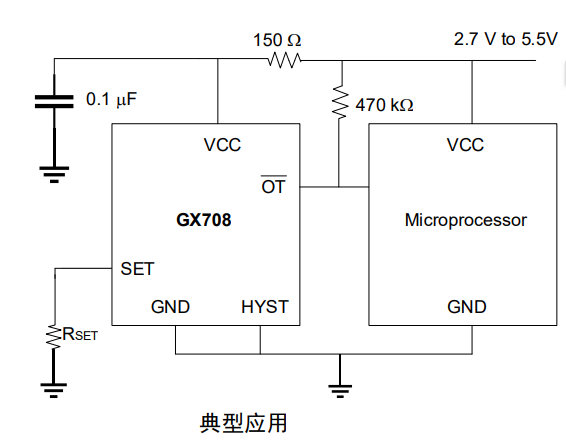 GX708是一款完全集成的、可编程电阻器温度开关,在其全工作范围内,只需一个外部电阻器即可设定温度阀值。GX708 提供一个开漏、低电平有效输出和一个介于2.7V至5.5V的电源电压范围。 温度阀值精度的典型值为±0.5℃而最大值为±3℃(+60℃至+100℃时)。静态流耗的典型值为 33μA。可通过引脚选择来确定 30℃或者 10℃的温度滞后。