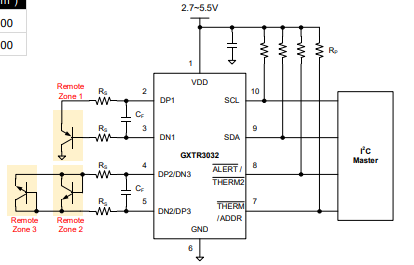 GXTR3032 尤其适用于利用集成在先进工艺制程下的服务器、处理器中的远程三极管(NPN / PNP Type)进行测温。GXTR3032 支持对 0.09<β<21.36、三极管形式连接的 PNP 进行自动补偿,以达到高精度测温。