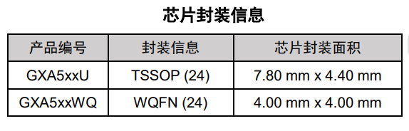 GXA555 内置弱上拉电阻,为每个 GPIO 端口赋予默认高电平。GXA539 具有低有效的复位输入引脚。